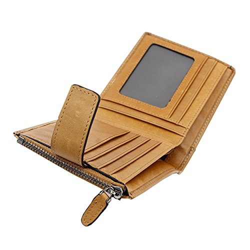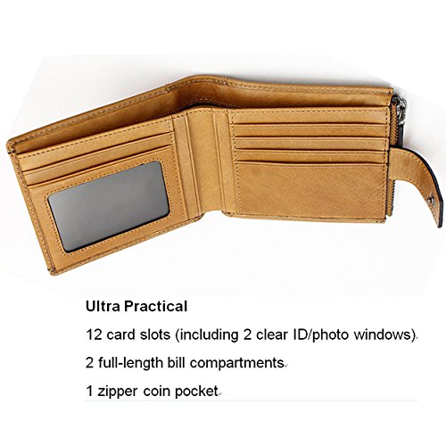 -. Feature : Premium Leather--- 100% head layer cowhide genuine leather, soft and durable. Longer time we use, nicer it becomes. / Ultra Practical ---12 card slots(incluing 2 clear ID/photo window)+ 2 full-length bill compartments+ 1 zipper coin pocket. Roomy enough to your credit cards, cash, coins, notes, receipts and cheekbook well organized. One removable card sleeve give you quick access to your favorite cards. You could also put it in your back pocket when you don't feel like carrying the entire wallet. / Slim Size--- Size: 3.94" x 4.72" x 0.67". This slim wallet can be easily placed in your front pocket or back pocket. Best choice for avoiding bulky looking wallets. / Multifunctional for Your Busy Life---Multi-storey fold is designed to keep your things organized well, scratch resistant and durable which make it convenient and suitable for daily life. / Satisfaction Guarantee-- 100% quality inspection & 30 day money back guarantee. If you have any issue with the wallet or for any reason you're not 100% satisfied, please do not hesitate to contact us.