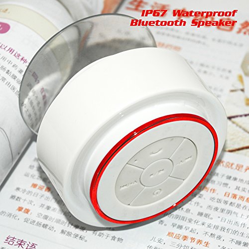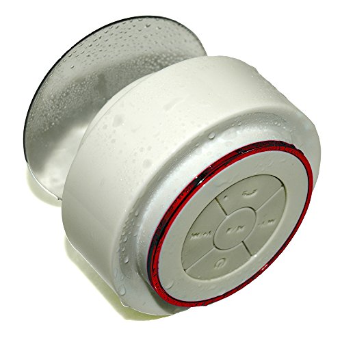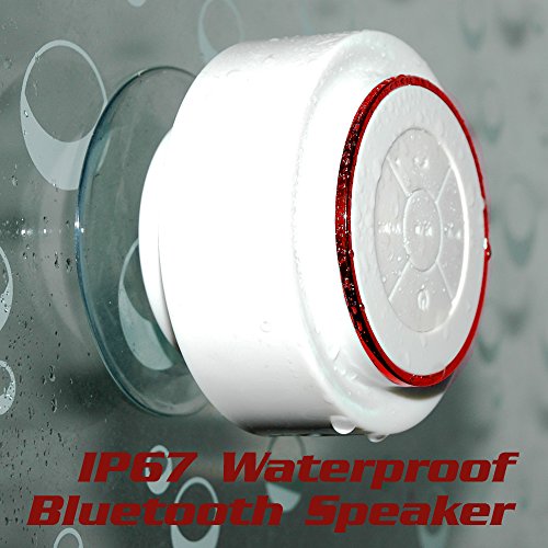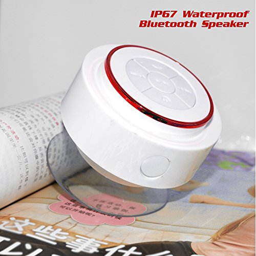 KONG KIM IPX7 100% Waterproof & Dust-proof Floating Bluetooth Shower Speaker - Compatible with all Bluetooth devices including iPhone 7, 6s, and Samsung devices (White & Red)