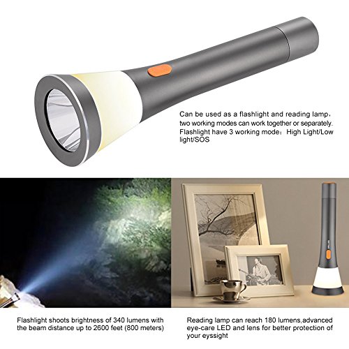 【Ultra Brightness】:flashlight shoots brightness of 340 lumens with the beam distance up to 2600 feet (800 meters);table lamp can reach 180 lumens,suit for reading ;advanced eye-care LED and lens for better protection of your eyssight
