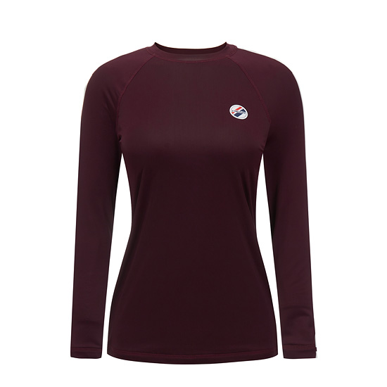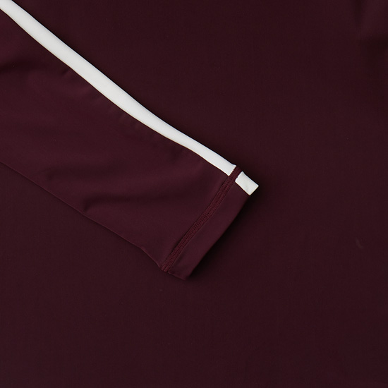- 어깨선과 슬리브에 배색 라인으로 포인트를 준 여성 래쉬가드.