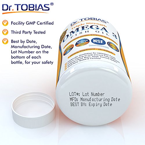 Let The Quality Of Your Fish Oil Reflect Your Wish To Support Your Health. Independently tested for product purity, projected efficacy, ingredient safety, nutritional value, and label accuracy. Dr. Tobias Omega 3 meets the TV Dr's Guidelines of 600mg DHA per day with one serving. What Science Says: Research shows the importance of Omega 3 essential fatty acids for our health.. Supportive but not conclusive studies indicate that Omega-3's may be support: Heart Health, Brain Health. Health of Joints and support Mood and Skin. What You Receive: 90-Days-Supply: 180 capsules (90 servings). Each serving gives you 2000 mg fish oil with 1400mg Omega 3 (800mg EPA, 600mg DHA). Our capsules have enteric coating for better absorption and no fishy aftertaste. We use molecular distillation so you get one of the highest degrees of purity. Look at the product pictures at the top. Buy NOW.Feature