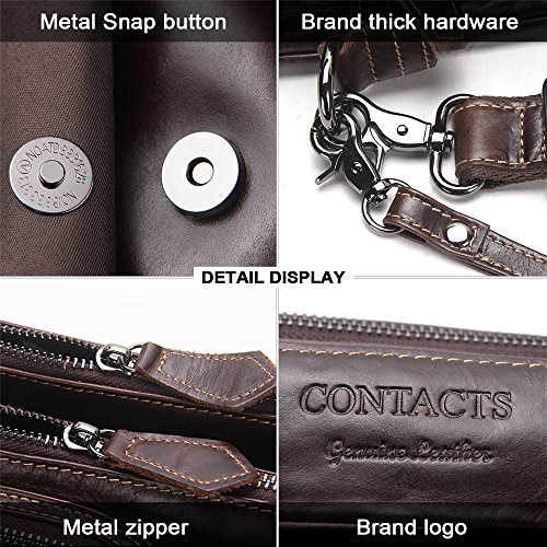 -. Title : Contacts Vintage Soft Genuine Leather Large Capacity Travel Men Messenger Bag Dark Brown