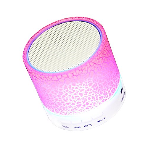 -. Feature : Ultra Small&Portable. The ultra small size: 2.3in*2.3in*2.3in,mini portable bluetooth speaker is lightweight and convenient. Ideal for car,bedroom,wash room,office,conference, or traveling,camping etc. / Bluetooth Technology. Built-in Bluetooth chip,wireless speaker is widely compatible with smart phone,laptop,other devices with Bluetooth function.With remote control,hands-free call is available when your phone connected.You can also insert your TF card in it or receive FM radio. / Colorful LED Light. Equipped with colorful LED light, home audio speaker can light up your house in the dark.Exquisite and fashionable,the crackled pattern loudspeaker box can be a nice gift. / Stereo Surrounding Sound.With excellent acoustics configuration and super bass,the powered stereo computer speaker delivers rich surrounding stereo sound,giving you beautiful music experience. / Support 3.5mm Audio Plug.You can also used it as usb powered speaker to connect your iPhone,iPad,Samsung or other mobile phone,PC,laptop,desktop,tablet,MP3,MP4 via aux in jack.