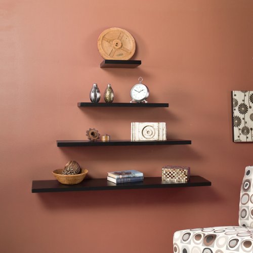 - Feature : Black finish / No visible screws, connectors, or tracks / Constructed of painted and laminated solid New Zealand Pine / Max weight capacity: 15 lbs / Easy as hanging a picture