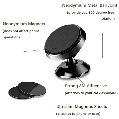 Magnetic Car Mount Holder,HETBEES Universal 360° Rotation Magnetic Cell Phone Holder,Dashboard Mount,Desk Cell Phone Holder, Hands Free Phone mount for all Smartphones and Small Tablets,iphone phone