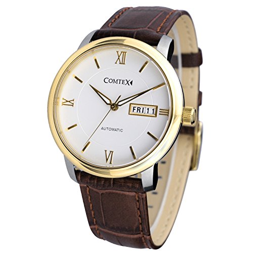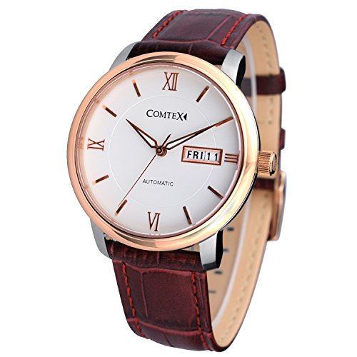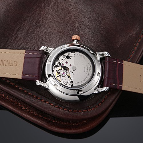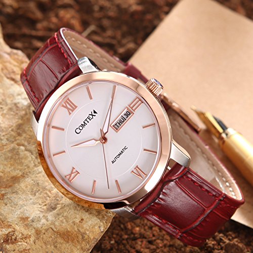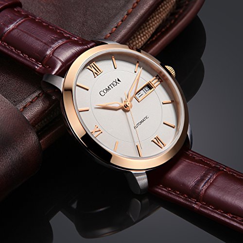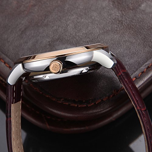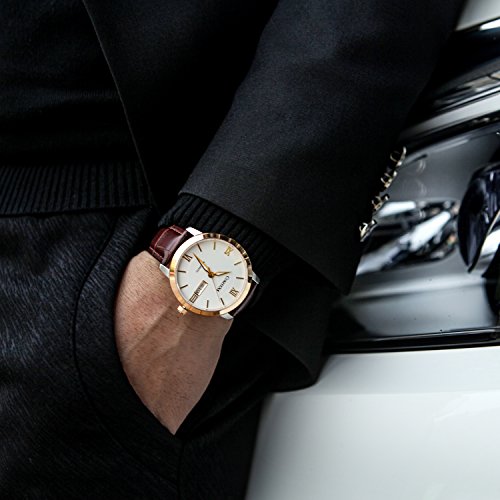 LUXUEY MEN'S WATCH: Anti-allergic brown leather strap with buckle,Comfortable and Fit for most size of wrist