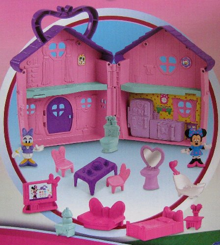 ミッキーマウスクラブハウスミニー デイジー ミニーとデイジーのおままごとセットです。 ミニーのフィギュア、デイジーのフィギュア、キッチンテーブル、椅子2脚、ベッド、ベッドサイドテーブル、洗面台、お風呂、トイレ、カウチ、エンドテーブル、テレビの13個のおもちゃが入っています。