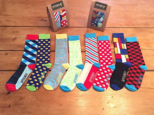 -. Feature : Mens Colorful Socks are Proven to get you compliments, boost your mood and spike your confidence; Bright and colorful patterned fun socks will get you noticed / Color Socks that are Velvety smooth against your skin, premium cotton sock blend ensures the perfect thickness and they're so soft and comfortable. 78% Cotton/20% Polyamide/2% Spandex / Ultra durable Designer Socks that will look brand new for a long time! Wash and wear. Moisture wicking fabric no mildew or smell. Longer length to compensate for some shrinkage / Beautiful packaging makes the best mens gifts like groomsmen gift socks, christmas gift socks, birthdays, fathers day gifts and more. One size fits all 7-12 / We're encouraging men to be more confident, self-expressed, fun loving and happier people one pair of fun socks at a time - Envision a better version of yourself!