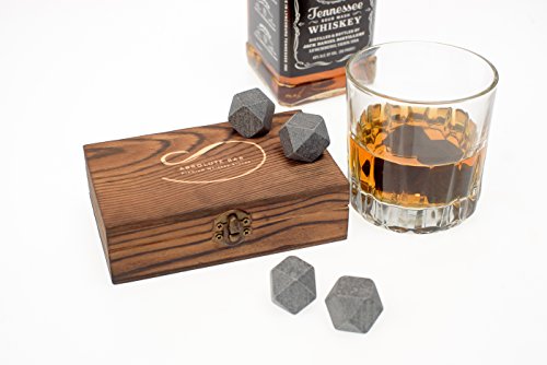 -. Title : AbsoluteBar Whiskey Stones | Set of 6 Diamond Whiskey Stones | Reusable Chilling Stones [Chill Rocks] | Perfect Gift Box with A Velvet Carrying Bag and Tongs | No water Dilution | For any beverage