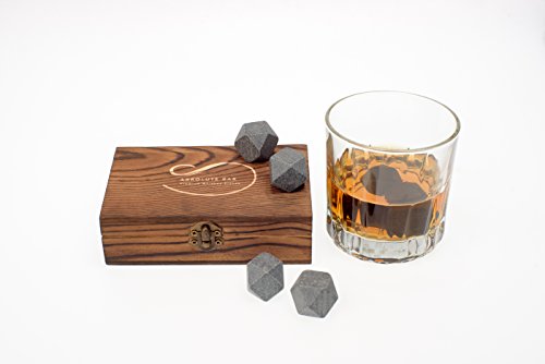 -. Feature : Replaces water ice cubes to maintain the perfect undiluted and cold taste to your beverage, keeps drinks cold and chilled for an extended period / Specially designed for whiskey, wine and bourbon, providing the perfect temperature recommended by all the big beverage labels / Made of Basalt stone - food grade; odor and taste-free; safe and FDA approved / Perfect and great gift, Package contains: 6 pc's of 100% diamond cut basalt, velvet bag and a tong packed in a wood box / Whiskey stones, Ice Cubes, Chilling Stones, Diamond Shape stones, stones