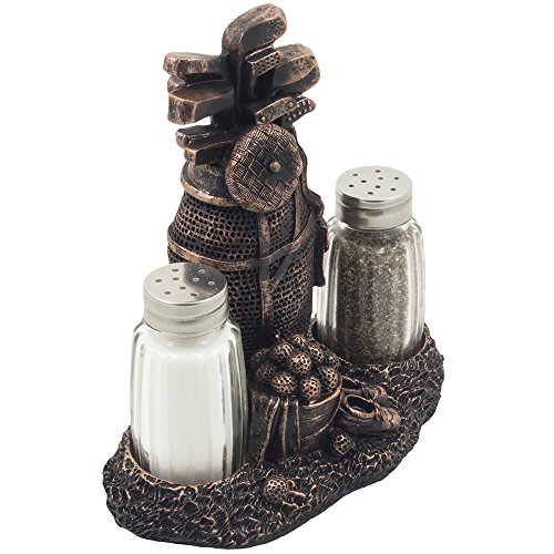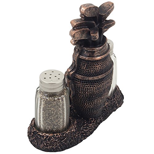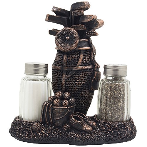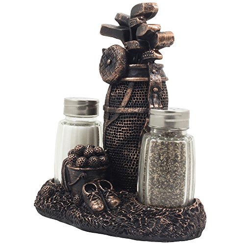 Classic Golf Salt and Pepper Shaker Set with Decorative Antique Bronze Look Figurine Holder Display Stand for Vintage & Retro Sports Theme Kitchen Table Decor Spice Racks As Father's Day Gifts for Golfers by Home-n-Gifts