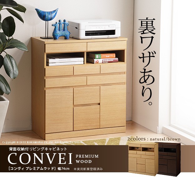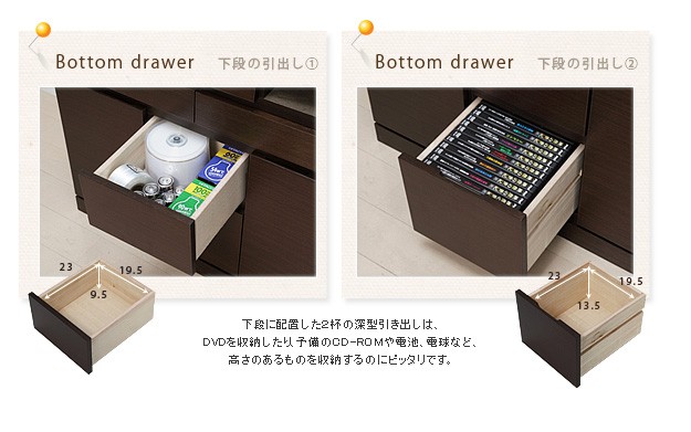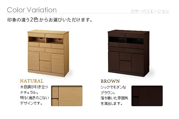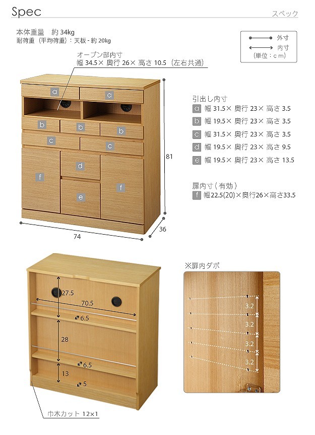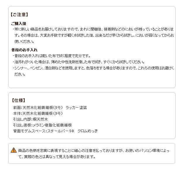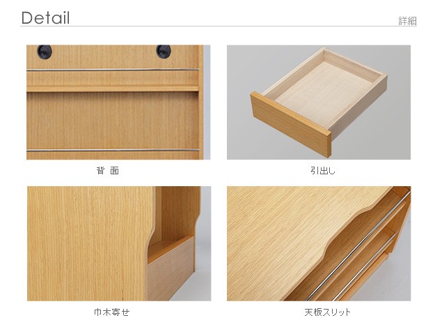 材質:本体・前面-天然木化粧繊維板(タモ)、引出底板-メラミン樹脂化粧繊維板、引出内部-桐天然木