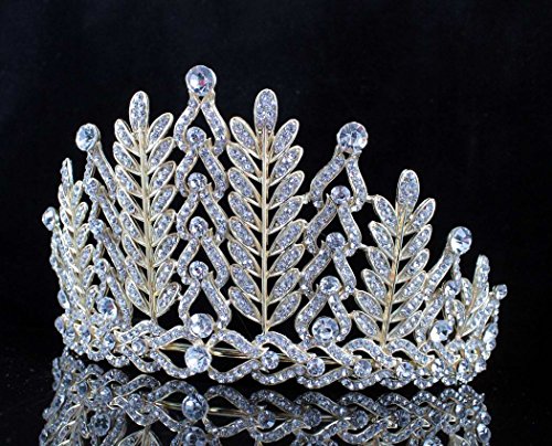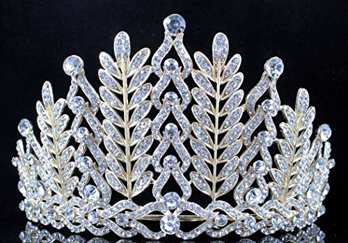 You are looking at gorgeous vintage styled floral Austrian rhinestone tiara with hair combs in GOLD TONE setting. Glittery Clear Austrian rhinestones are set on beautiful Gold Tone metal. All the rhinestones shine a lot! Sides hair combs for extra security. This tiara is perfect for wedding, party, prom, pageant or any special occasions! Thanks for looking!Feature