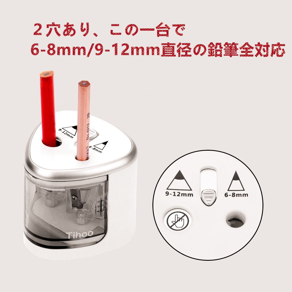 ❤ 【2穴式】削り穴は2つあり、それぞれ直径6-8mmと9-12mmの鉛筆に対応します。ほとんどの鉛筆に対応できます。子供のギフトに最適!