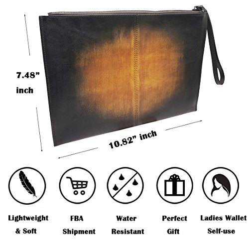 - This handmade clutch handbag was produced through degreasing and tanning technology, and has the most luxury and comfortable feel that you can get from this real leather wallet. Absolutely a gorgeous combination of beauty and utility.