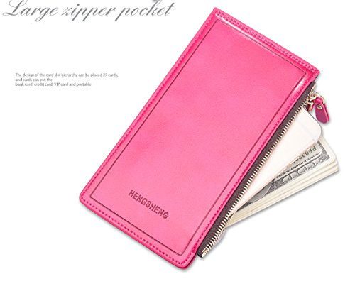 Women's RFID Blocking Leather Multi Card Organizer Thin Wallet with Zipper Pocket