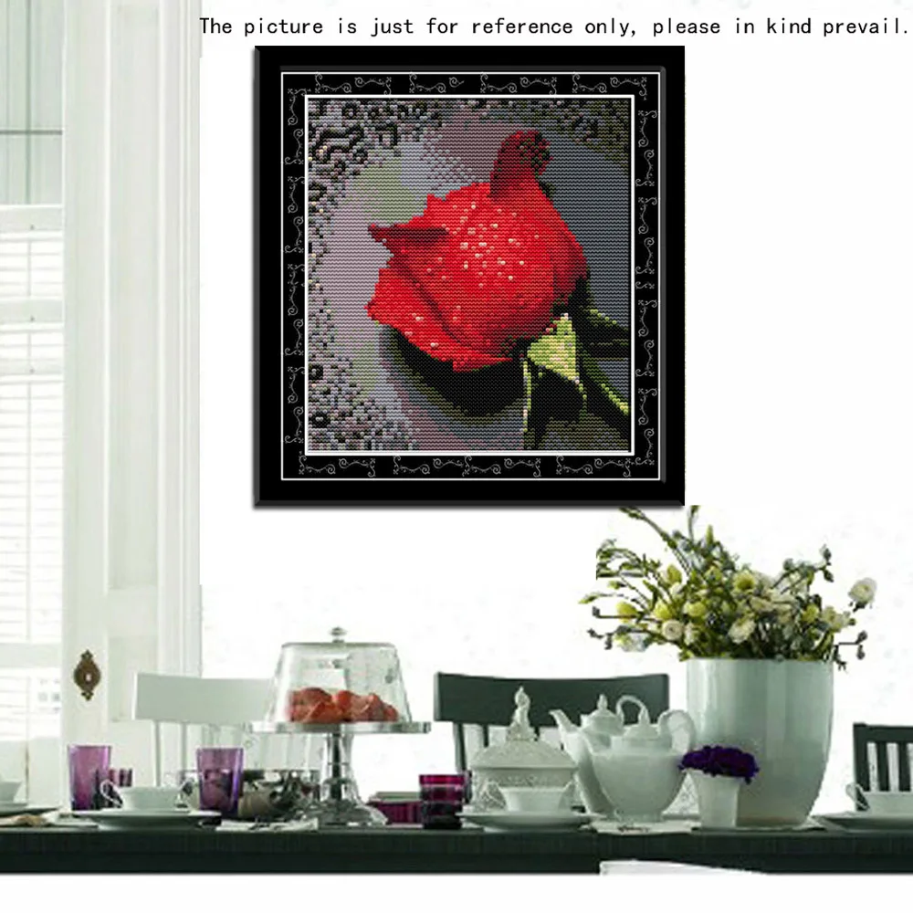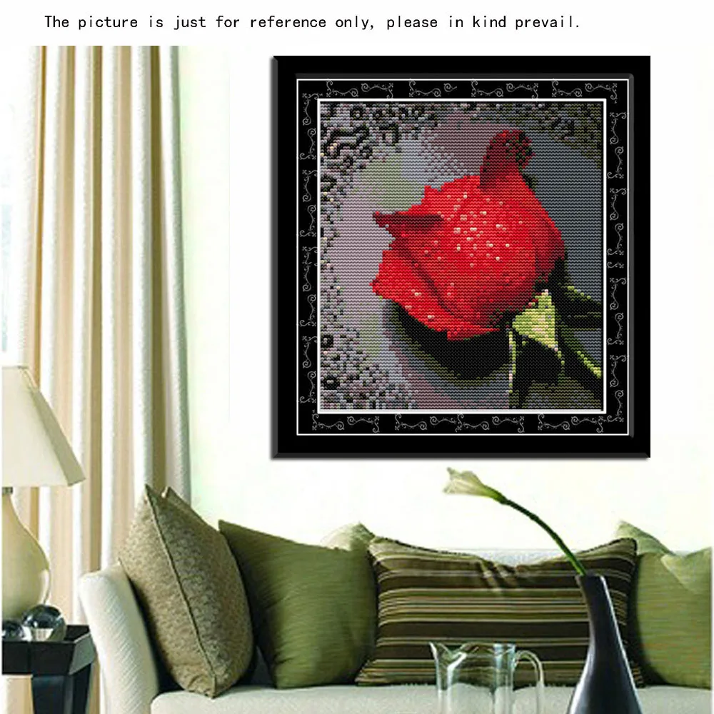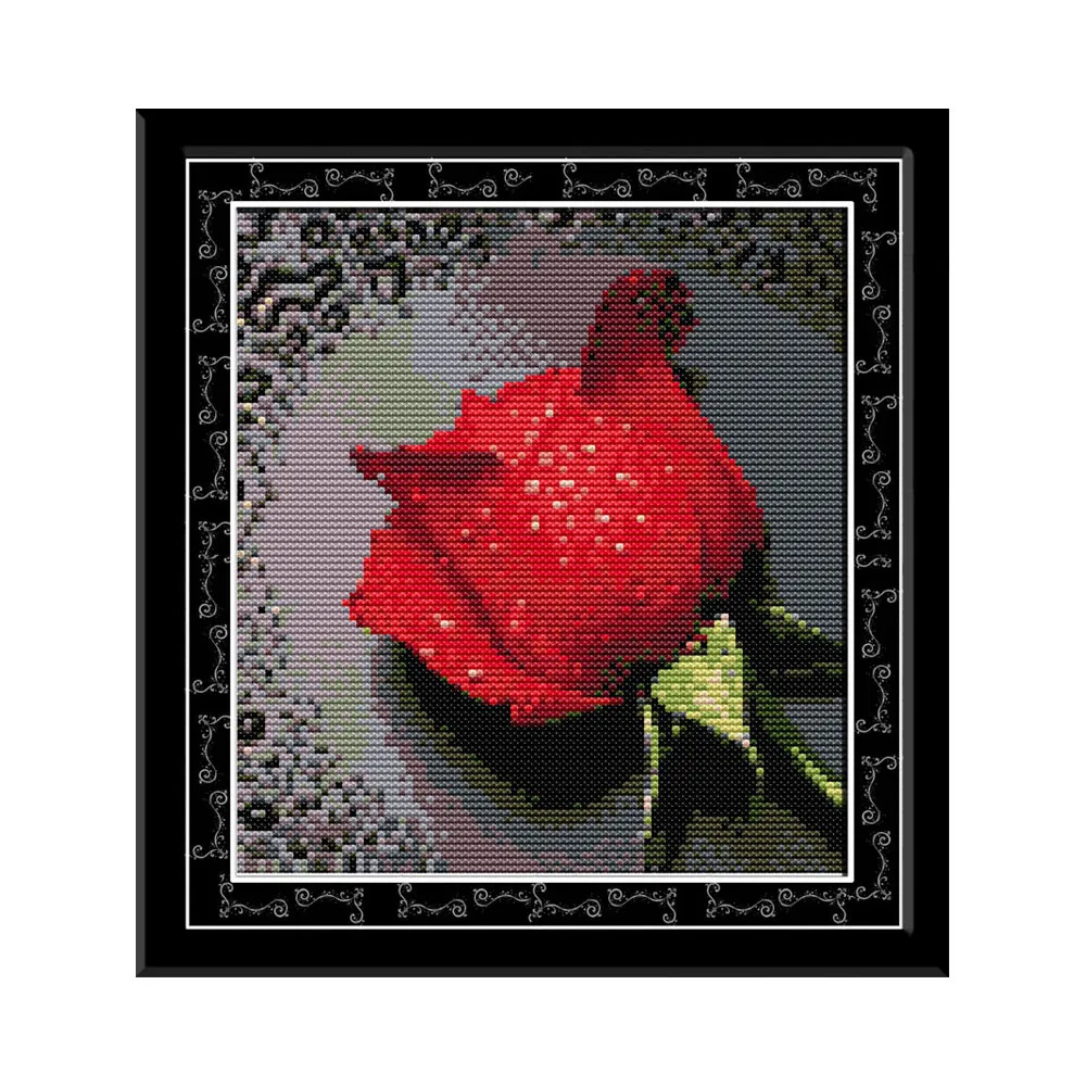 DIY Home Decoration 3D Handmade Needlework Cross Stitch Set Embroidery Kit 14CT Rose with Dew Pattern Cross-Stitching 26 * 27cm