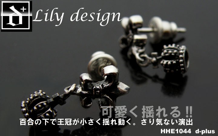 SILVER 925製 ユリ・クラウンピアス!揺れるクラウンの上部にユリ型レリーフのワンポイント。この揺れ感が絶妙!