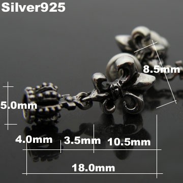 【サイズ】8.5mm×10.5mm×厚み=3.0mm(ユリ)  5.0mm×4.0mm(クラウン) 【素材】シルバー925