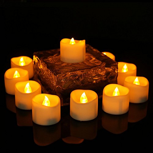 Youngerbaby 24pcs Amber Yellow Battery Operated Candles, Flickering Flameless LED Tea Lights, LED Candle for Wedding Gift Votive Holder, Electric Warmer