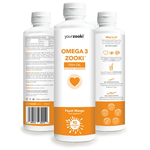 -. Title : Omega 3 Fish Oil Zooki | 800% Better Absorption, Triple Strength 3000mg Burpless Fish Oil / serving, High Grade EPA + DHA, Non-GMO, USA Made, 16oz Bottle, Peach Mango Liquid lsion by YourZooki