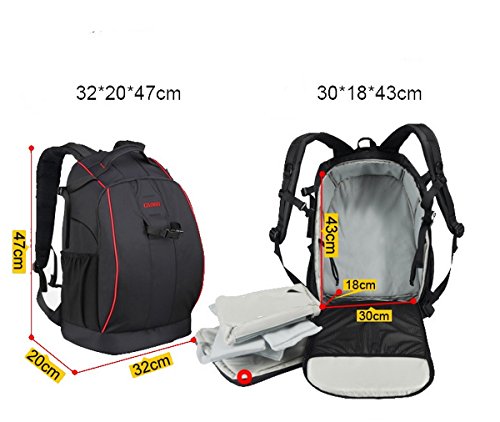Feature : Can storage 1 DSLR camera with lens, 2 long lens, 1 flashlight, 15 / Fits for Canon 5D,5DII,5DIII,7D,600D,1000D,1100D, Nikon D800,D800E,D90,D600,D5100,D8001.Sony etc / High quality waterproof nylon material, with rain cover, double safe your camera / Size:32*20*47 cm/7.87