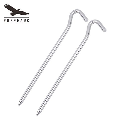 Tent Pegs with Hook, Freehawk Tent Stakes Strong Aluminum Alloy Garden Stakes, Tent Stakes Camping Tents with Tent Pegs Bags for Camping Trip, Hiking, Gardening, Other Outdoor Activities in Silver