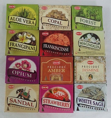 12 Assorted Boxes of HEM Incense Cones, Best Sellers Set #3 12 X 10 (120 total) by Hem