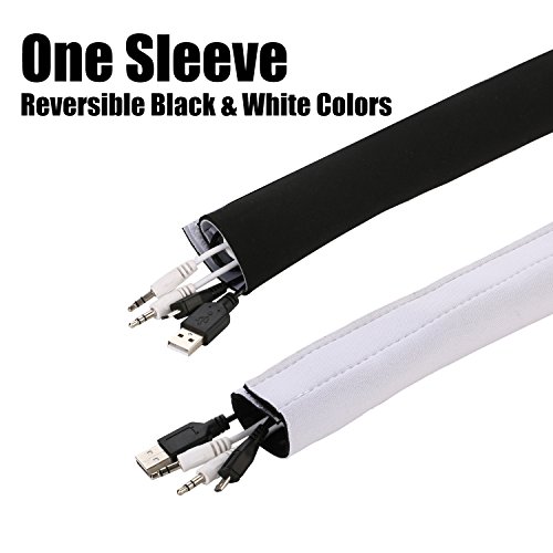 Cable Management Sleeves, ENVEL Neoprene Cord Organizer with Free Velcro for TV USB PC Computer Network Wires ( 118 inches ) DIY by Yourself, Adjustable Black and White Reversible Wire Hider