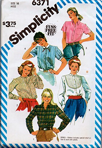 -. Title : Simplicity 6371 Set of Blouses with Front Band Button Closing Sewing Pattern Size 16 Bust 38 Vintage