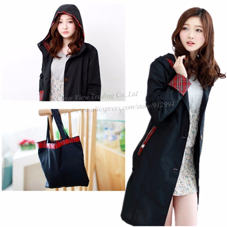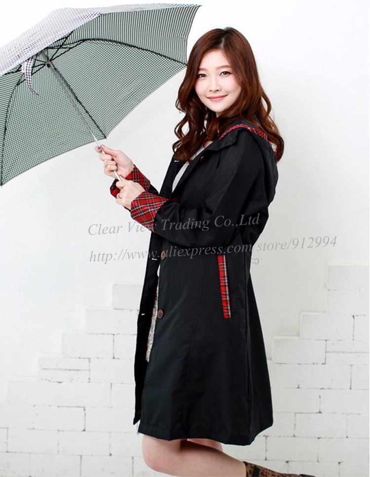 Polyester Trench Coat Style Women Raincoat With Hood Outdoor Waterproof Rainwear Breathable Rain Poncho