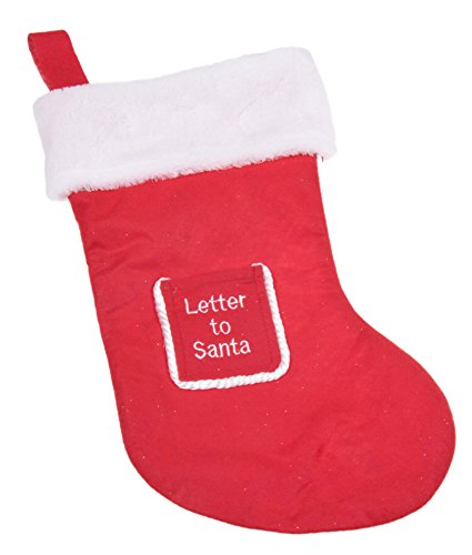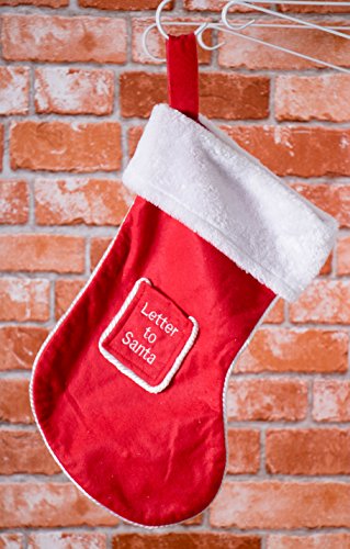 Soft Plush Cloth Hanging Christmas Stocking | For Kids, Teens, Adults | Red and White Letter to Santa Holiday Decor Theme | Perfect for Small Gifts, Stocking Stuffers, & Candy | 16.5" Tall