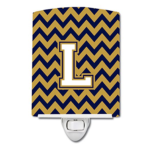Caroline's Treasures Letter L Chevron Navy Blue and Gold Ceramic Night Light, 6 x 4", Multicolor