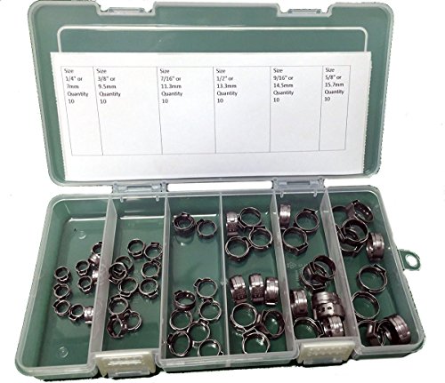 Oetiker Stepless OET070157-60PCK Clamp Assortment Case, Ear Clamps, Single Ear Hose Clamps without Pincers, 1/4"- 5/8" (Pack of 60)