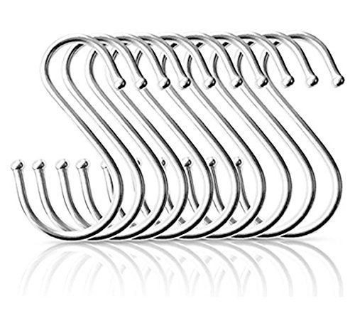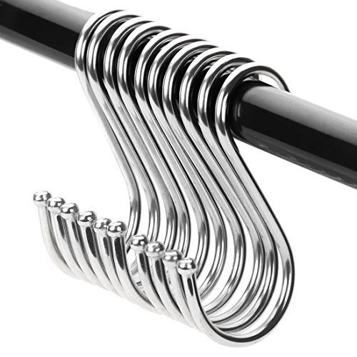 Kitchen Tools Premium Heavy Duty S Hooks Stainless Steel 10 Pcs (Round Polished) - Size L