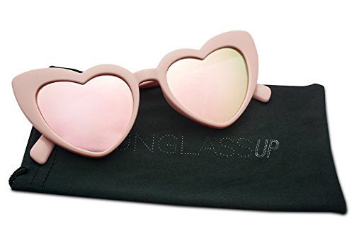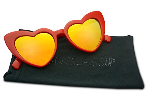 (SunglassUP)/Accessories/Eyewear/DIRECT FROM USA/Oversized Lovestruck Round High Tip Heart Shaped Colored Mirror Lens Sunglasses