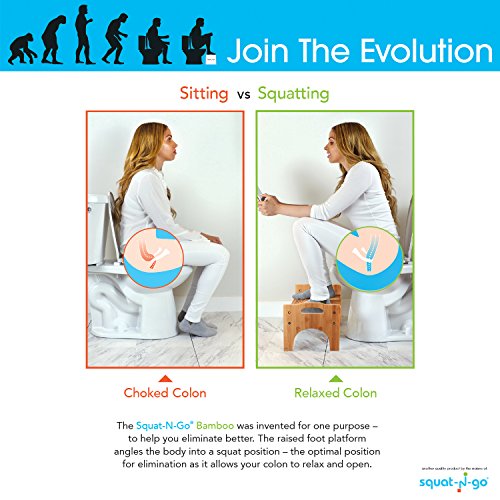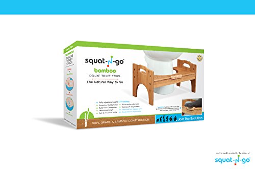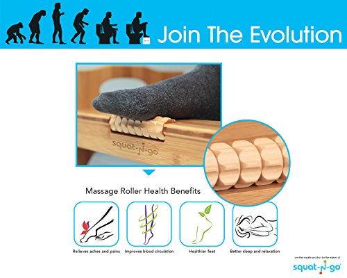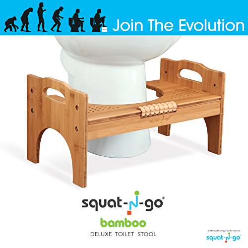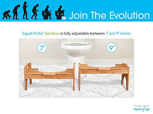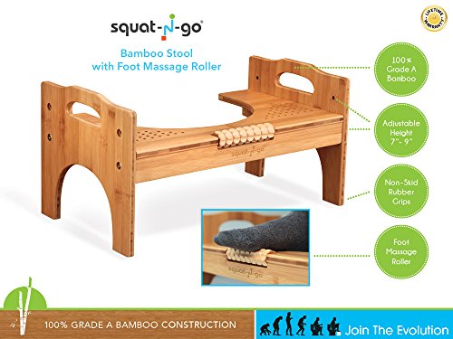 Squat N Go 7” or 9” Adjustable Bamboo Luxury Squatting Toilet Stool with Built-In Foot Massager to Boost Blood Circulation