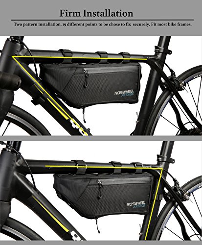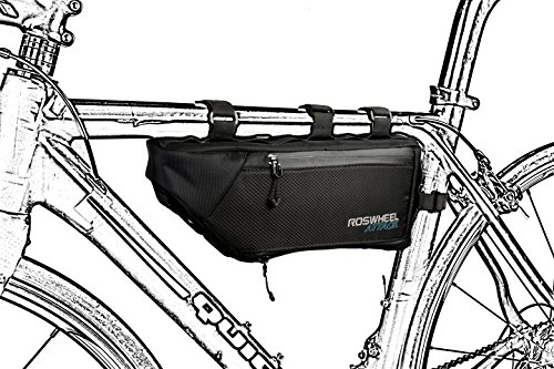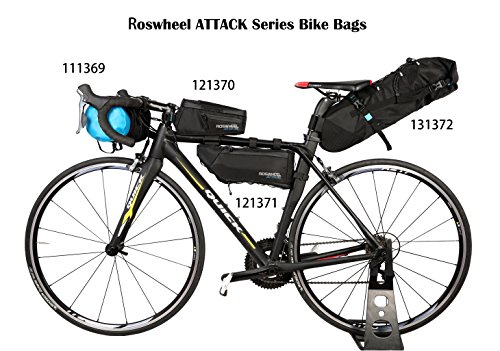 A BAG BUILD FOR ADVENTURE. The Attack Series Frame Bag is the ultimate carrier for your next adventure, but also great for the daily commuting. It takes the advantage of the unused space in the frame, provides a perfect balance on the bike load. The bag can be folded into a smaller size for compact packing. Removable straps suit for various bike frames. Water resistant lining gives you the confident to cope the weather. A design for drinking water hole coming from the side of the bag. It is robust and made for the traveler. Features: 1. Constructed of 210D diamond lattice nylon and Hypalon-reinforced fabric for scuff, tear and weather. 2. 3L main compartment with 1L expandable extra volume, one outside zippered pocket, and two mesh pockets offer spacious and organized storage. Exit port in main compartment routes a hydration tube or battery wire. 3. Water-resistant zippers with zipper garages help keep your gear dry. 4. Movable hook-and-loop Velcro straps secure bag to different sizes of bike frames. 5. Reflective logs add visibility in dark. Specifications: ***Brand: Roswheel ***Model: 121371 ***Materials: Nylon, TPU ***Color: Black ***Size: 35.5cm/14in(L)x7cm/2.75in(W))x14cm/5.5in(H)--------Original 35.5cm/14in(L)x7cm/2.75in(W))x24cm/9.5in(H)--------Extended ***Weight: 320g/0.7lbs ***Capacity: 3-4L Package includes: 1 Frame Bag 0 |