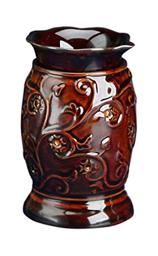 StealStreet SS-GC-CA-023BR Brown Porcelain Oil Burner with Flower Vine Design Aromatherapy Device
