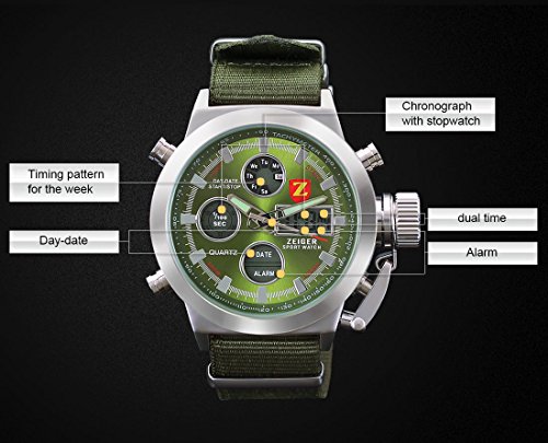 원본상품명: Zeiger メンズ アナデジLED 腕時計 多機能 日付曜日 クロノグラフ クォ?ツ スポ?ツ 時計 ミリタリ? (グリ?ン)