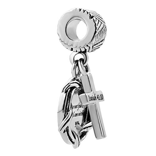 LilyJewelry Bible Dangle Charm Christian Keep Faith Cross Beads For Bracelets