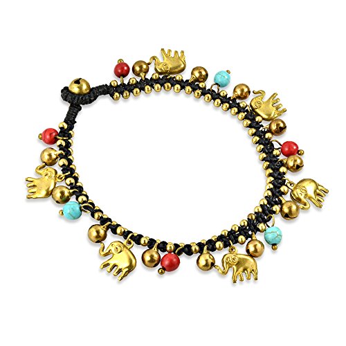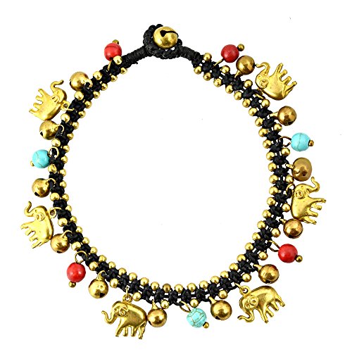 Natural stones and fashion brass beads charms adorn this beautiful artisan crafted anklet handmade by Khun Bird from Thailand. Made from reconstructed red coral and simulated turquoise with light 'jingle ball' and elephant charms, this piece can be worn by women and young girls of all ages. Great for festivals, outdoor events or a beach getaway! PLEASE NOTE: The handcrafted nature of this product will produce minor differences in design, sizing and weight. Variations will occur from piece to piece, measurements may vary slightly.AERAVIDA works directly with gifted and talented Artisans from all over the world. At the core of our philosophy is fair trade and fostering a sustainable future for our Artisans.