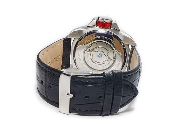 仕様自動巻、手巻き、5気圧防水、シースルーバック、カラー:ブラック(文字盤)、ブラック(ベルト)