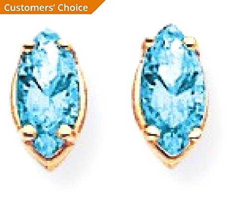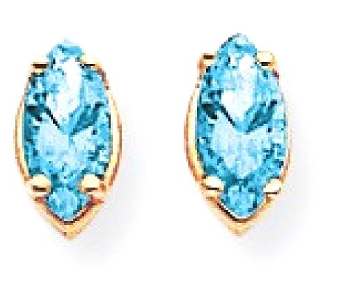 ICECARATS DESIGNER JEWELRY 14K YELLOW GOLD 7X3.5MM MARQUISE BLUE TOPAZ POST STUD BALL BUTTON STUD EARRINGS