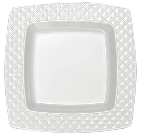 Table To Go 'I Can't Believe Its Plastic' 9.5" Dinner Plate, Square Diamonds Design, 200 Pieces, Color: Ivory