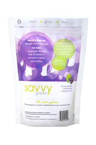 ReleaseDate : 2015-01-20 Studio : Savvy Green Publisher : Savvy Green Binding : Health and Beauty Product Description Savvy Green Oxygen Brightening Powder is an oxygen based bleach alternative that brightens clothes, removes stains, deodorizes, and boosts your laundry detergent's cleaning power. Our ultra-concentrated formula is phosphate, chlorine and fragrance free. Can also be used as an all-purpose household cleaner in the kitchen or bathroom. Package is 2.5 Lbs (or 1.1kg). Recyclable and re-sealable package with scoop included. Made in the USA. 0