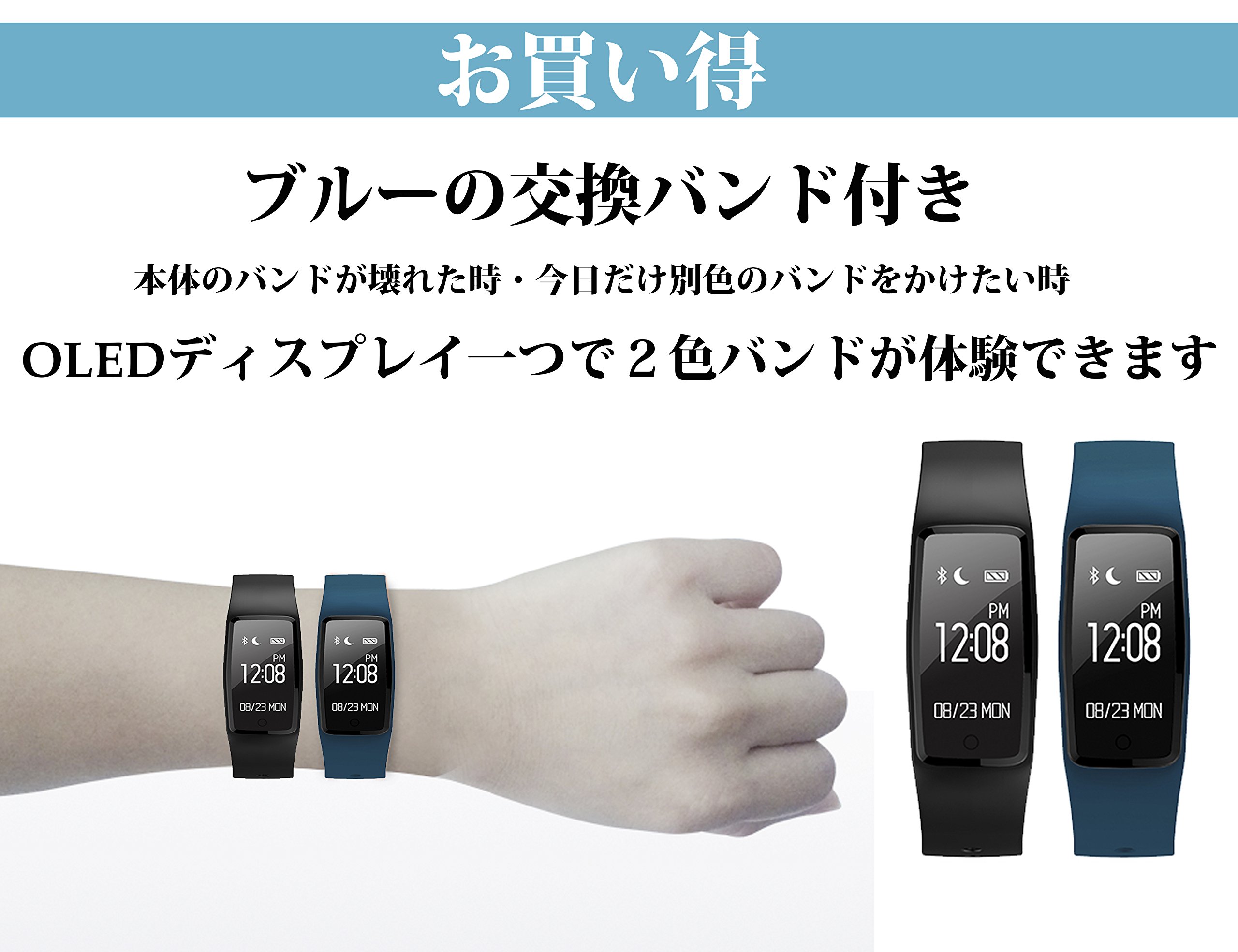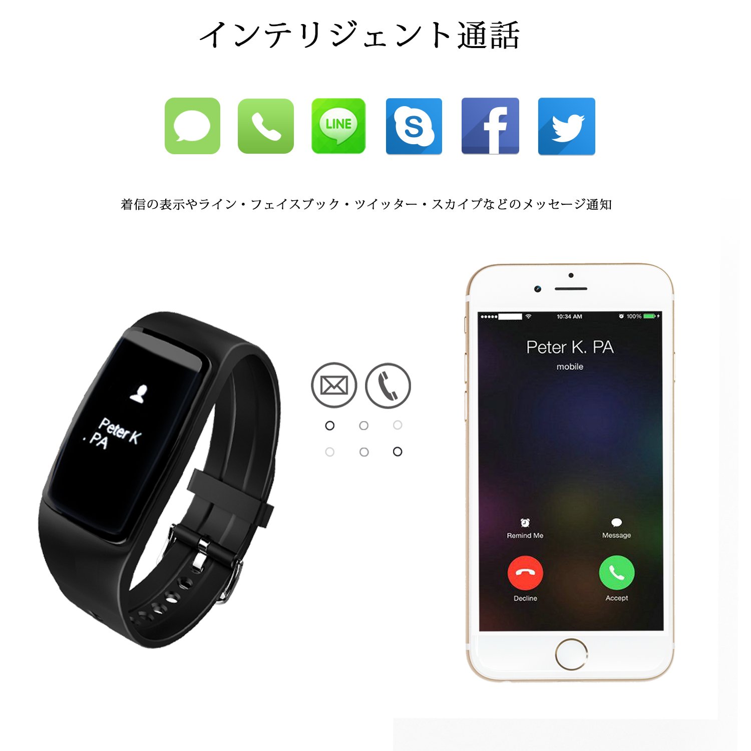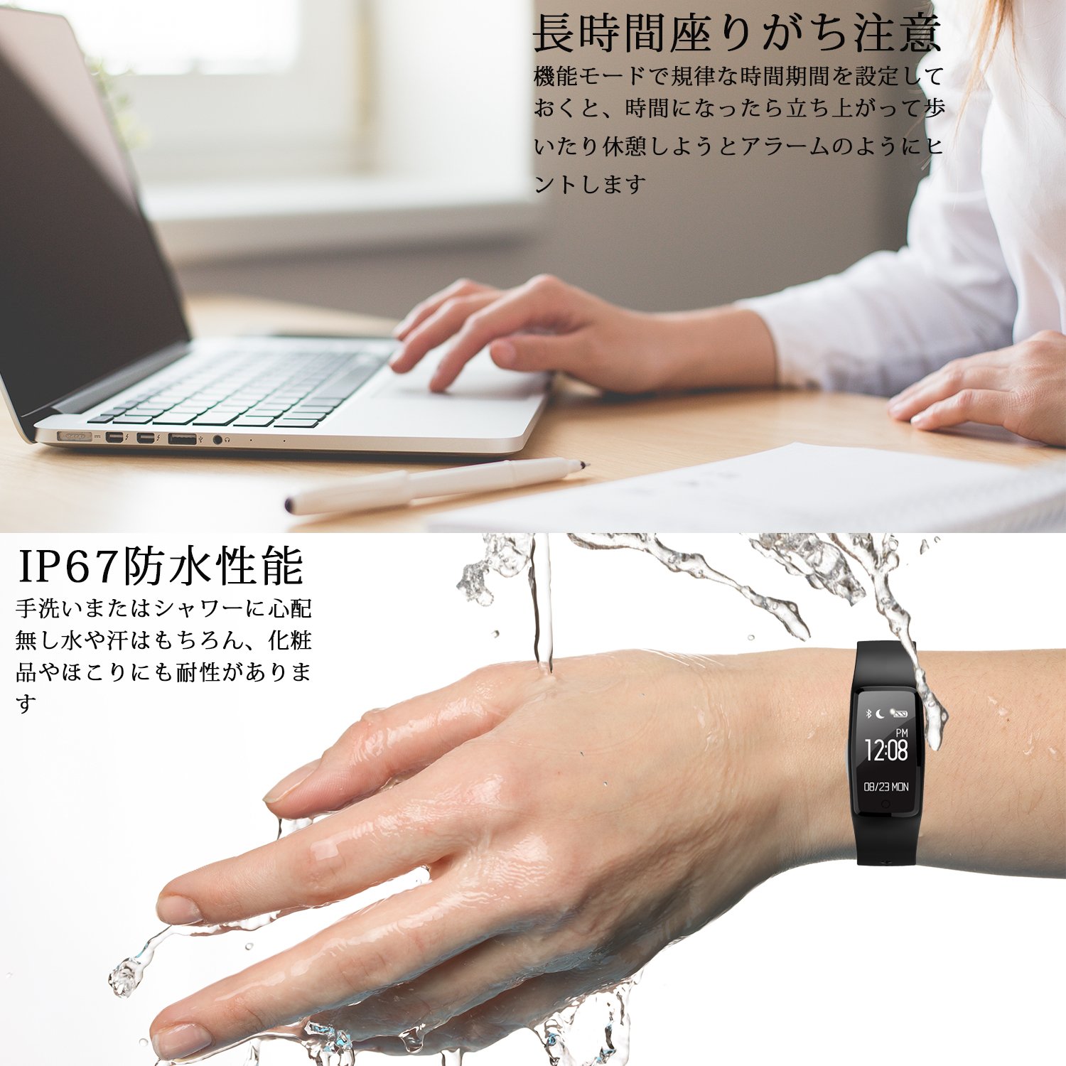 It has functions such as activity meter, heart rate monitor, pedometer, incoming notification, sleep meter, calorie measurement, camera remote control, sitting attention attention, alarm, date display, mobile search.