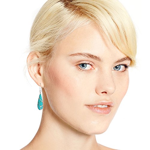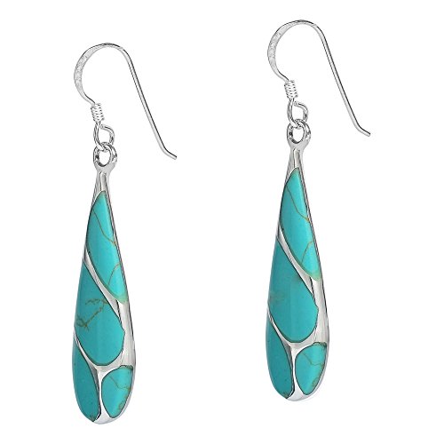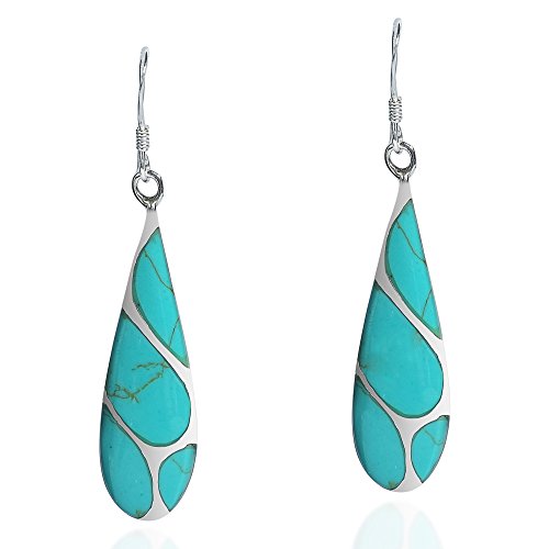 Polished teardrops of simulated cyan blue-green turquoise are framed with .925 sterling silver metal. Artisan Goong designed these fish hook dangle earrings beautifully. An elegant and unique addition to any style. PLEASE NOTE: The handcrafted nature of this product will produce minor differences in design, sizing and weight. Variations will occur from piece to piece, measurements may vary slightly.AERAVIDA works directly with gifted and talented Artisans from all over the world. At the core of our philosophy is fair trade and fostering a sustainable future for our Artisans.