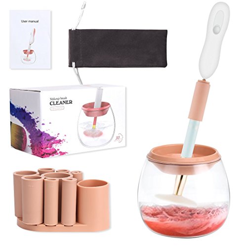 Makeup Brush Cleaner, Electronic Automatic Brushes Cleaner Instantly Wash and Dry All Your Cosmetic Brushes in Seconds with 8 Rubber Collars - Pink