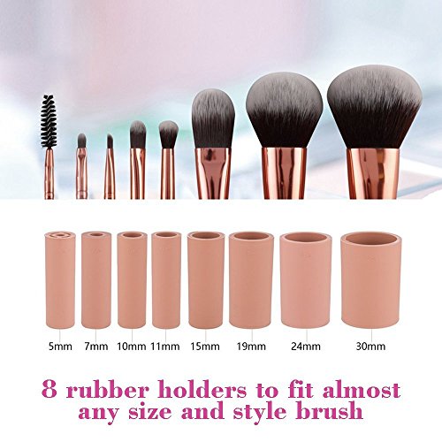 - FIT VARIOUS BRUSHES: There are 8 different sizes of rubber collars perfectly fit all your makeup brushes in 30cm, 24cm, 19cm, 15cm, 11cm, 10cm,7cm and 5cm.
